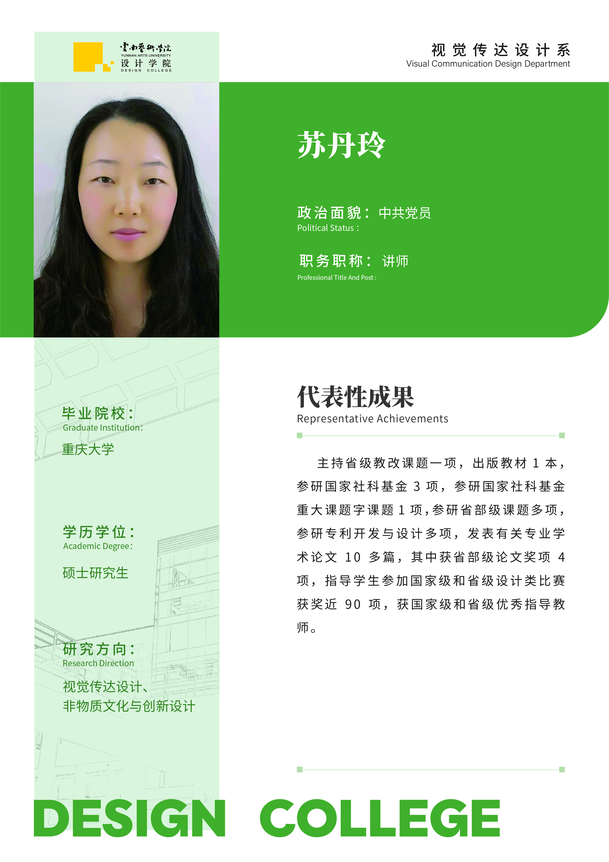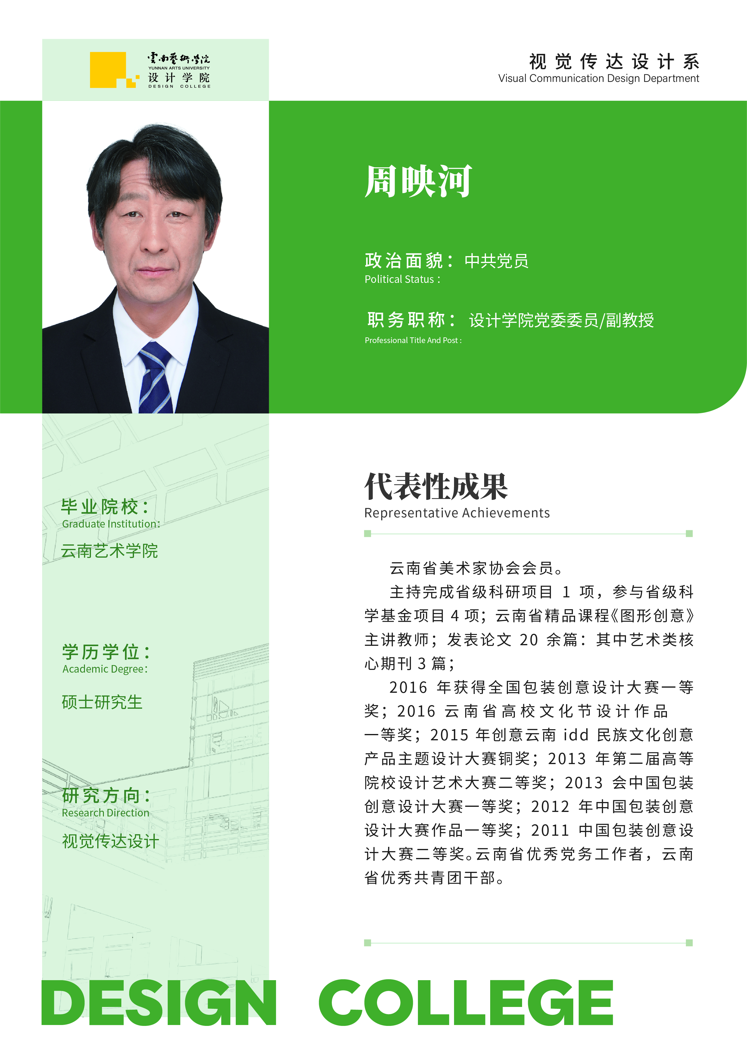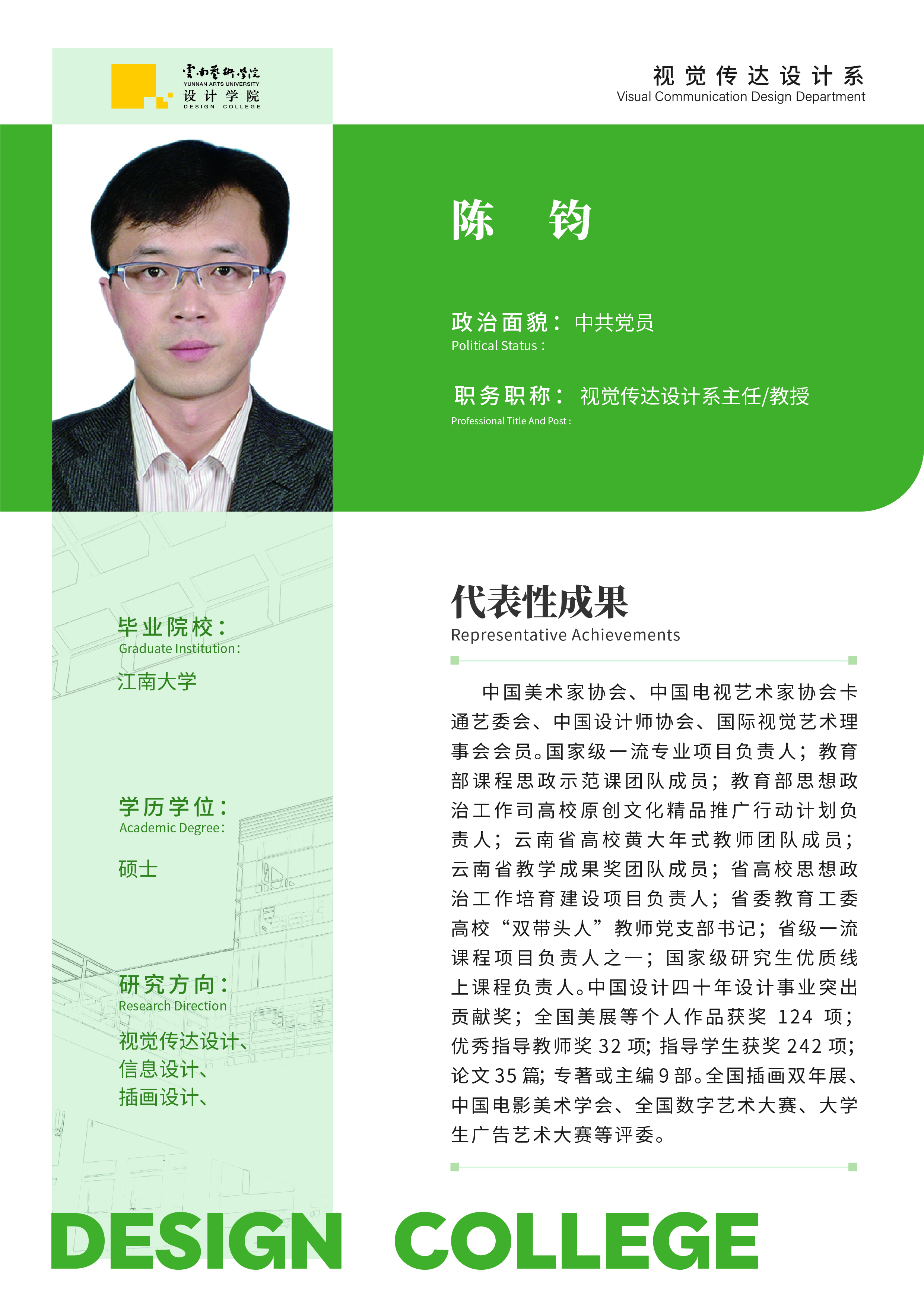 在科研方面,视觉传达设计专业取得了丰硕的成果。系部教师担任教育部课程思政示范课团队成员;教育部高校原创文化精品推广行动计划负责人;省教育厅科技创新团队成员;省社科科普宣传周重点项目负责人;云南省高校黄大年式教师团队成员;省教学成果一等奖团队成员等。国家级项目2项,省社科项目立项2项,出版资助1项;省教育厅基金项目7项等;相关论文发表并获奖四十余篇,出版著作18部。专业设计作品荣获教育部、文化部、全国美展、国家新闻出版署、中国包装联合会、中国美术家协会、中国出版协会、中国高等教育学会等国家级专业赛事活动的入选、获奖六百余项。