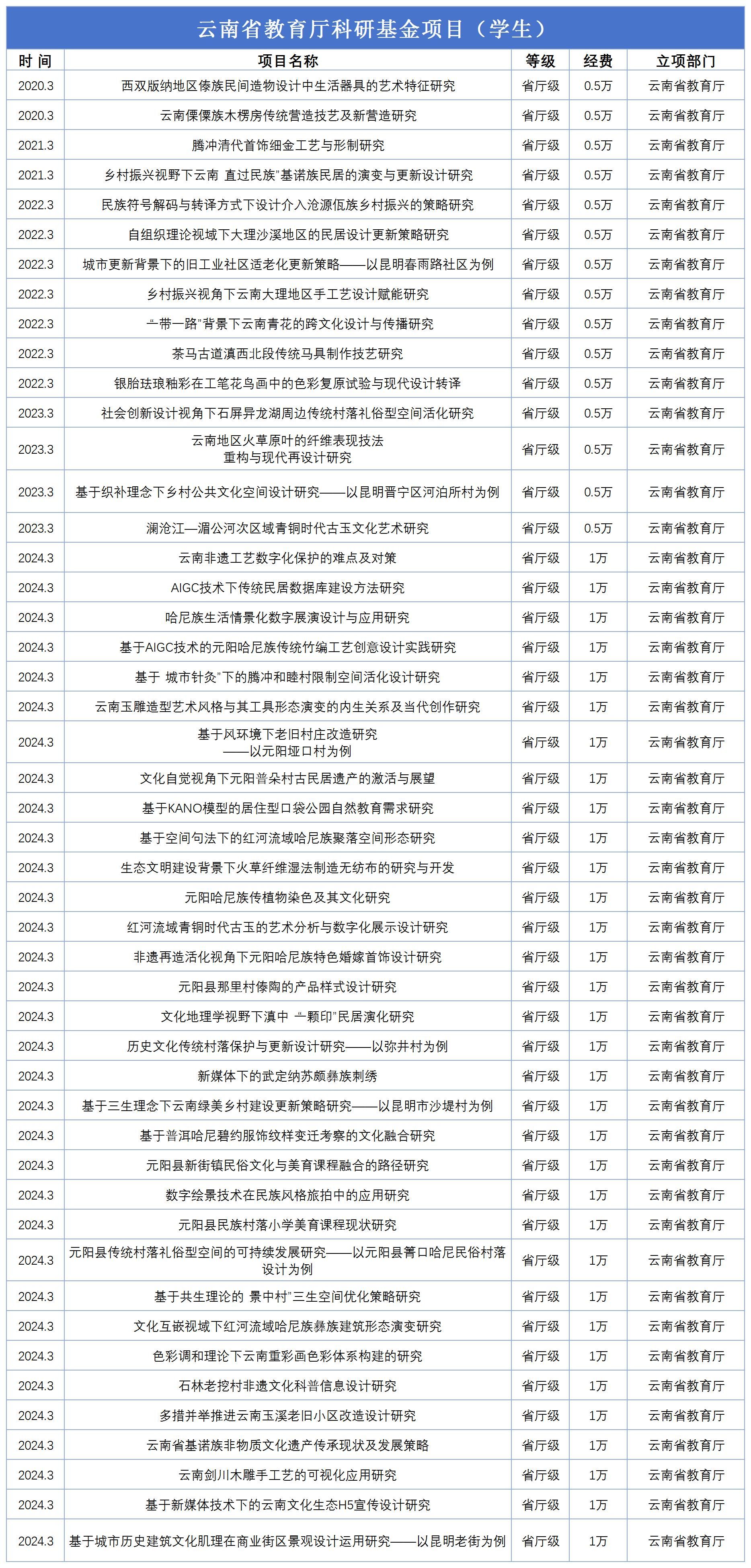 云南省教育厅科研基金项目(员工)