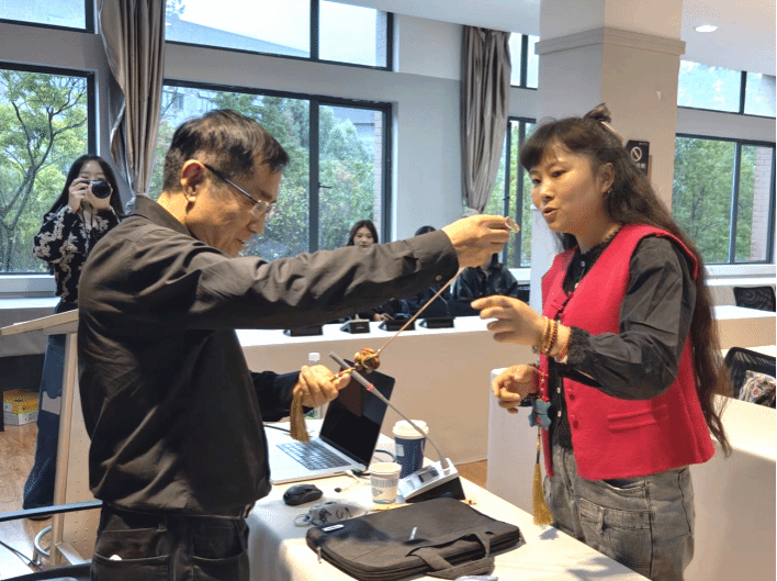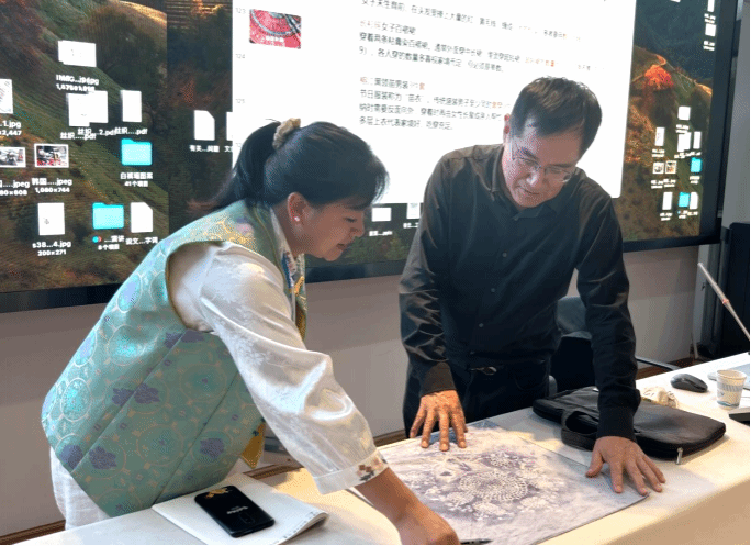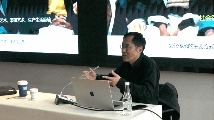 授课过程中,贾京生教授阐明了非遗在少数民族的传承与活化过程中展现的丰富艺术智慧。唯有深入了解非遗中蕴含的艺术智慧,辨识其值得尊崇之处以及必须坚守的核心,方能使之得以发扬光大。在展现艺术智慧时,还要有因地制宜的生态保护、生态利用、生态农业、生态居住,从而形成具有特色的设计语言。