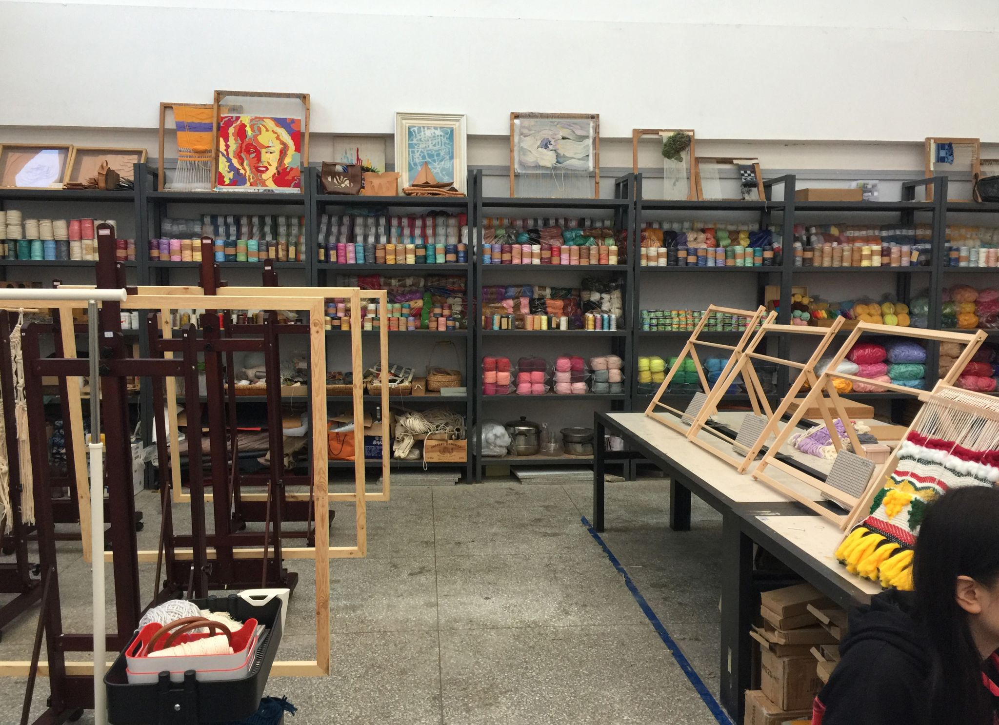 实验室分为台式壁毯编织区、绳编区;立式绳编挂毯区及线材展示区四个区域。主要用于精细手工绳结编织、绳编挂毯编织、绳编包袋编织及各类规格的壁毯编织使用。实验室主要承担员工完成基础工艺的学习、课程中涉及的材料与工艺融合创新试验、毕业设计作品制作以及创意产品研发,在产品设计专业核心专业课程中承担了产品设计材料与工艺、传统工艺设计再造、云南特色民间工艺、特色旅游商品设计等多门课程的教学辅助任务。