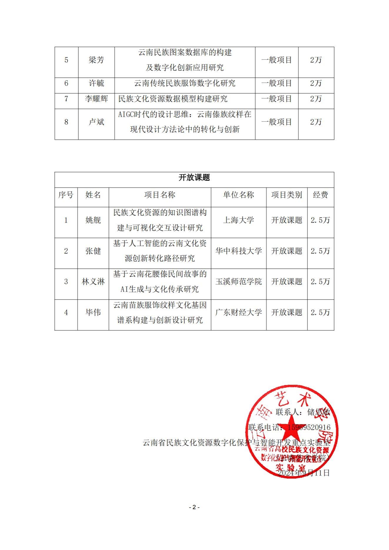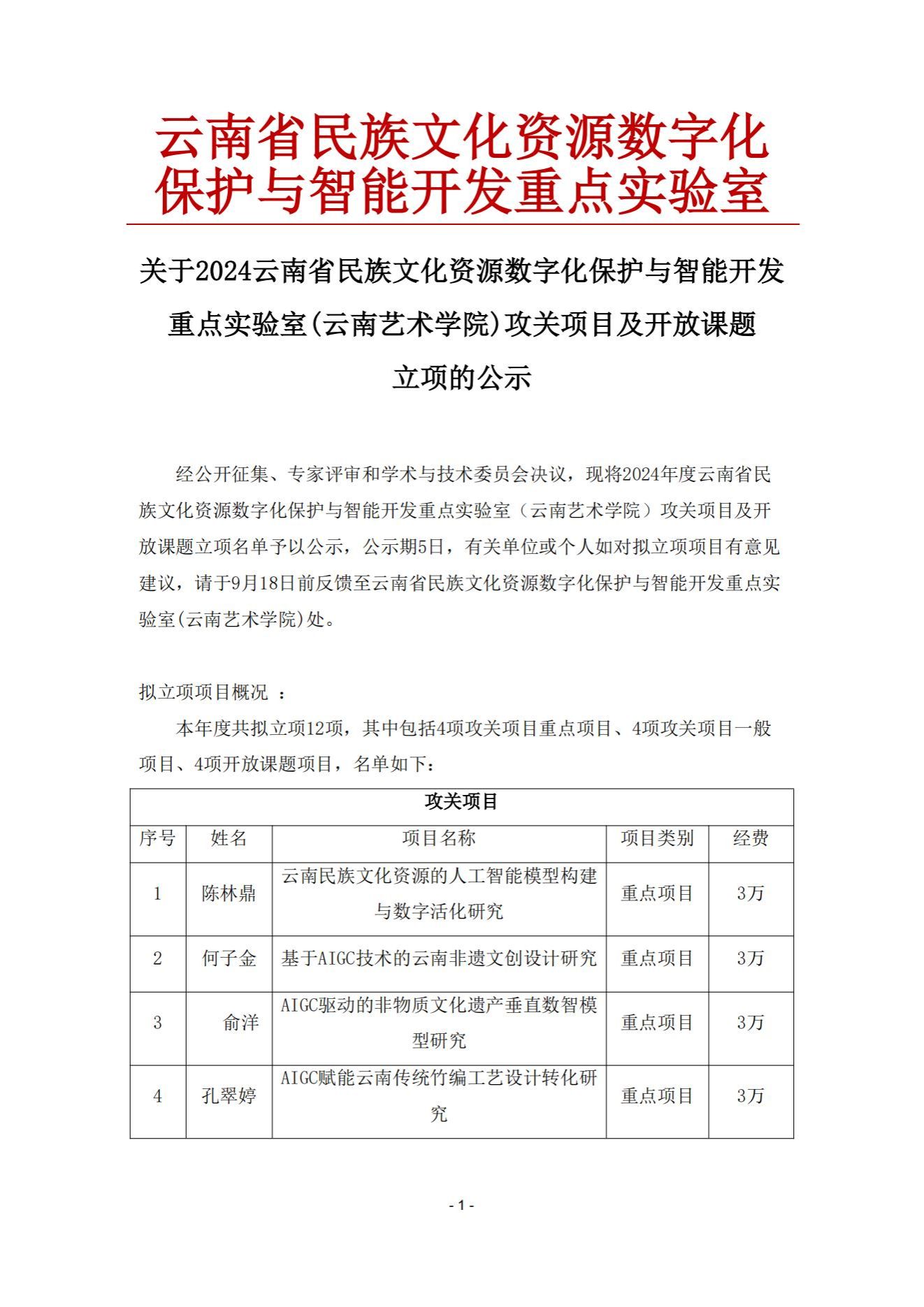 关于2024云南省民族文化资源数字化保护与智能开发重点实验室(美加墨世界杯官网)攻关项目及开放课题立项的公示