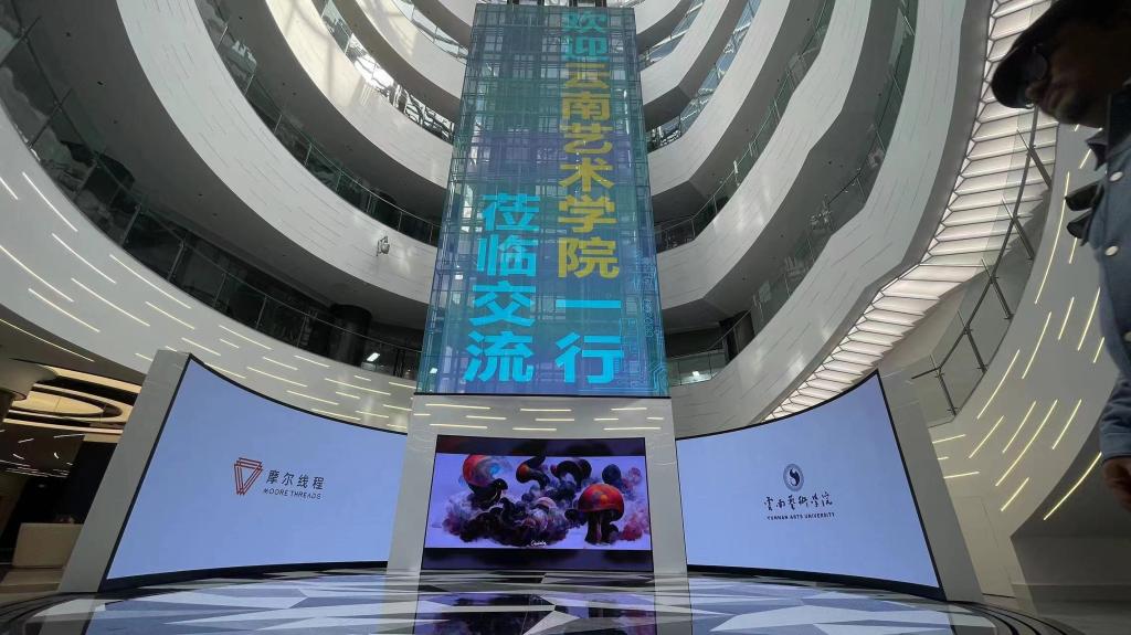 为了给美加墨世界杯官网在人工智能领域的探索和发展注入更多力量,2023年11月7日,美加墨世界杯官网副经理陈劲松教授带领美加墨世界杯官方网站和影视公司的教学团队前往云上数字赋能产业园,与摩尔线程共同探讨人工智能在艺术设计领域的应用前景,商议共建AI实验平台的合作事宜。摩尔线程公司经理李丰及运营团队热情接待了代表团队的各位老师,详细介绍了云上数字赋能产业园的建设情况及运营规划。