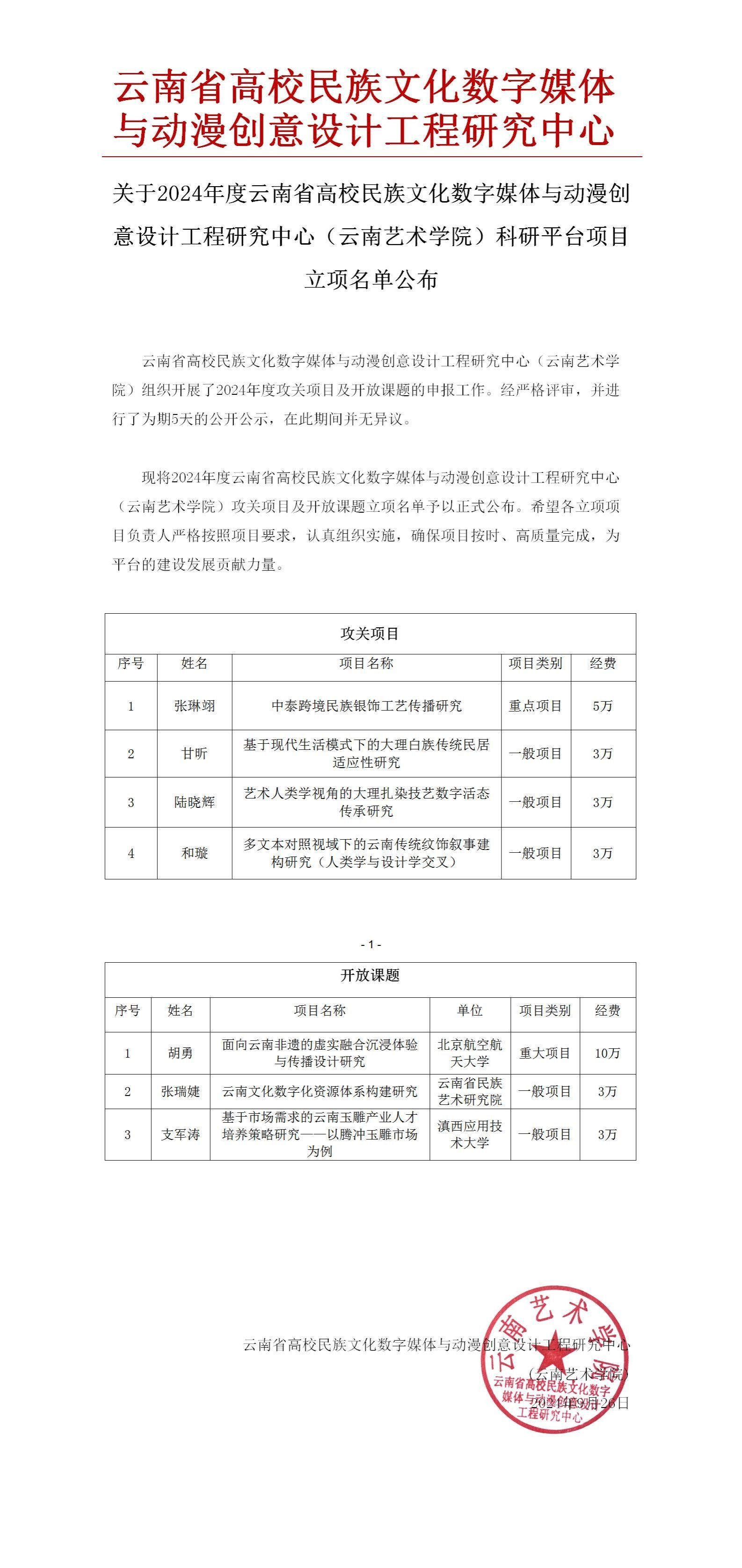 关于2024年度云南省高校民族文化数字媒体与动漫创意设计工程研究中心(美加墨世界杯官网)科研平台项目立项名单公布