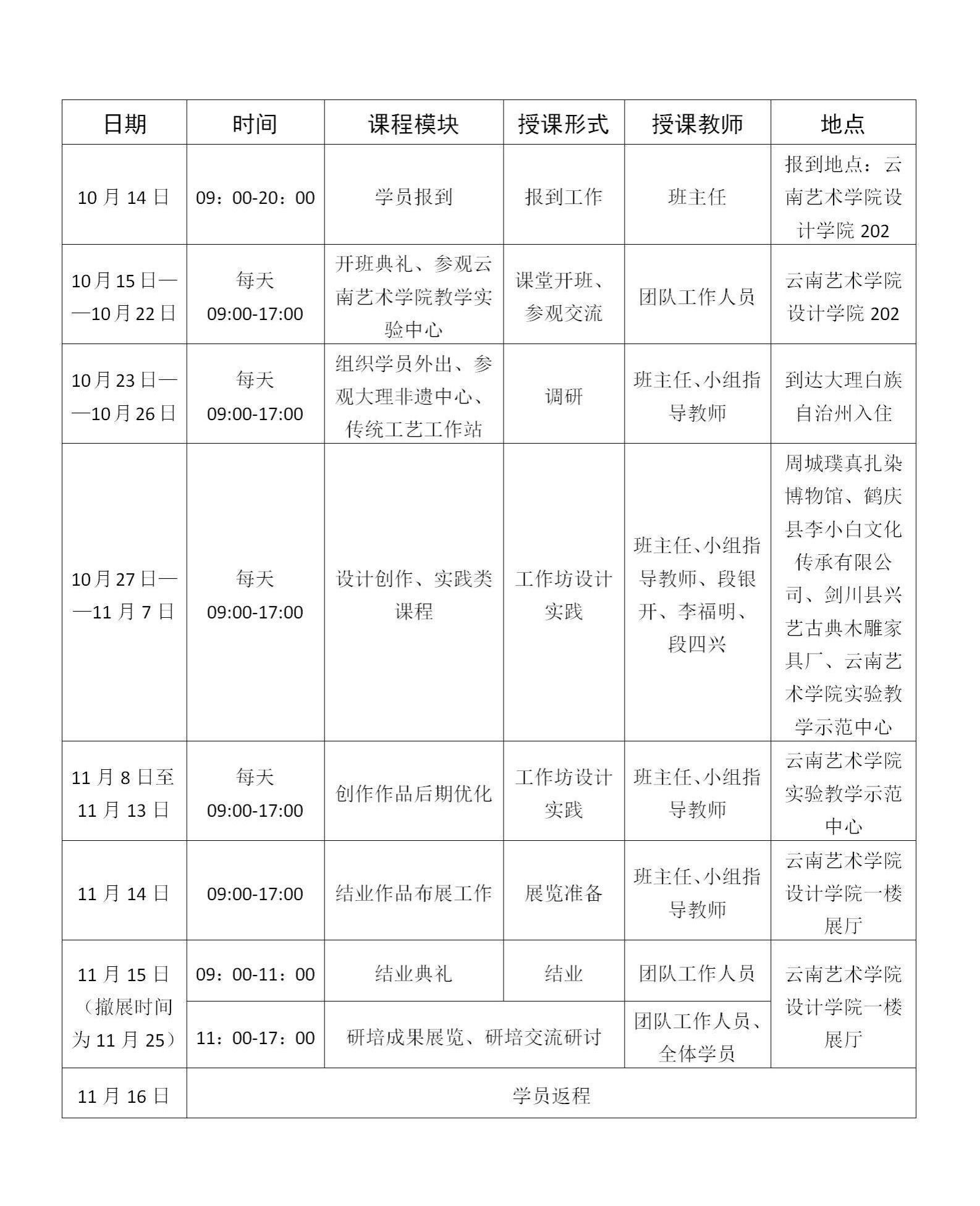 本次研修招收培训工艺类别为:金属工艺、木工艺、染织绣工艺、陶工艺(造型创意方向)。