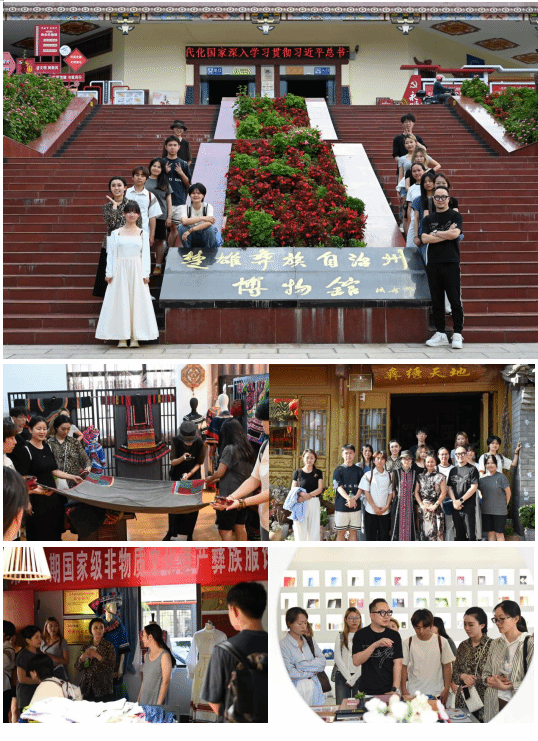 项目团队在成立以后进行了设计任务的分解和论证,在时间紧任务重的前提下制定了详尽的工作计划,并于2024年6月启动了第一次关于楚雄彝绣的田野调研,在调研中得到了楚雄州委宣传部以及楚雄州文化发展集团领导、同志们的大力支持,包括调研点的选择,行程的安排,彝绣文化和工艺资料的收集,为本次调研的成果取得提供了极大的帮助。设计团队针对楚雄市彝绣馆、楚雄彝族自治州博物馆、南华县至善彝绣馆等10余个调研点进行了详尽调研。