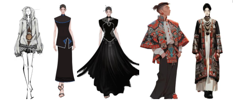 通过集中调研加后续的多次单独分点调研后,设计团队基本确定了设计方向。本次服装设计项目深度聚焦于楚雄彝绣的多元化与跨时代应用,旨在通过深入挖掘这一传统工艺在不同历史场景与时代背景下的独特风貌与韵味,探索其无限的可能性。不仅回顾彝绣在远古、古代、现代及后现代服饰中的演变历程,更以前瞻性的视角,设想彝绣如何在未来服饰产业中焕发出新的生命力。在技艺传承与创新方面,考虑既坚守传统纯手工刺绣的精髓,又积极探索与机械化刺绣的融合之道,力求在保持高效生产的同时,提升彝绣的审美价值。设计实践中,灵活运用传统彝绣配色与技艺,结合现代审美需求,创新设计图案;同时,也尝试以现代材料和技法重新诠释传统图案,展现出独特的艺术魅力。这是一次对传统与现代、技艺与艺术跨界融合的深度探索,旨在为彝绣的传承与发展开辟新路径,同时也为服装设计领域注入新的灵感与活力,引发更多关于如何将传统工艺融入现代生活的思考与讨论。