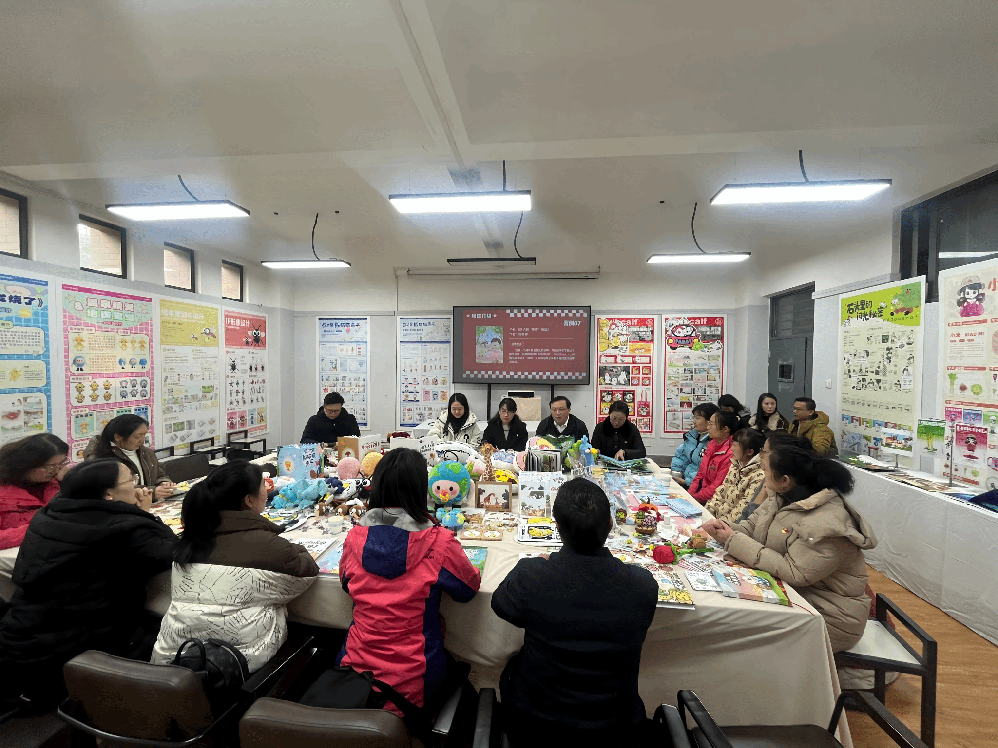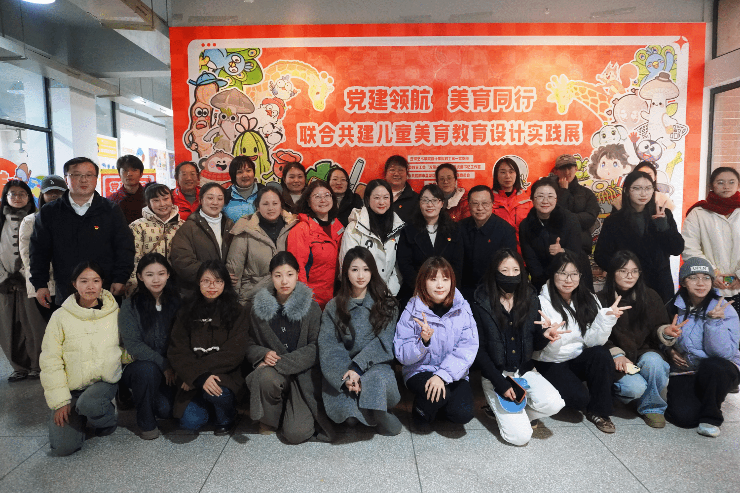 展览后,教工第一党支部与盘龙区东华幼儿园党支部,联合组织开展了“党建领航·美育同行”主题党日活动。在教工第一党支部副书记、视觉传达系副主任潘子尧的主持下,云南省教育工委“双带头人”党支部书记、视觉传达系主任陈钧教授,首先系统阐述了展览的创作背景与党建融合逻辑。随后,主创师生以“海鸥”“孔雀”“玫瑰”等云南特色元素为线索,分享了将地域文化符号转化为儿童美育语言的设计过程与教育思考。在交流环节,公司与幼儿园代表围绕课程共建、课题共研、实践共育、就业创业等维度展开讨论,初步形成持续深化协同的合作意向。这场跨界对话,既是对前期共建成果的集中检阅,也为下一步双向赋能奠定了基础。