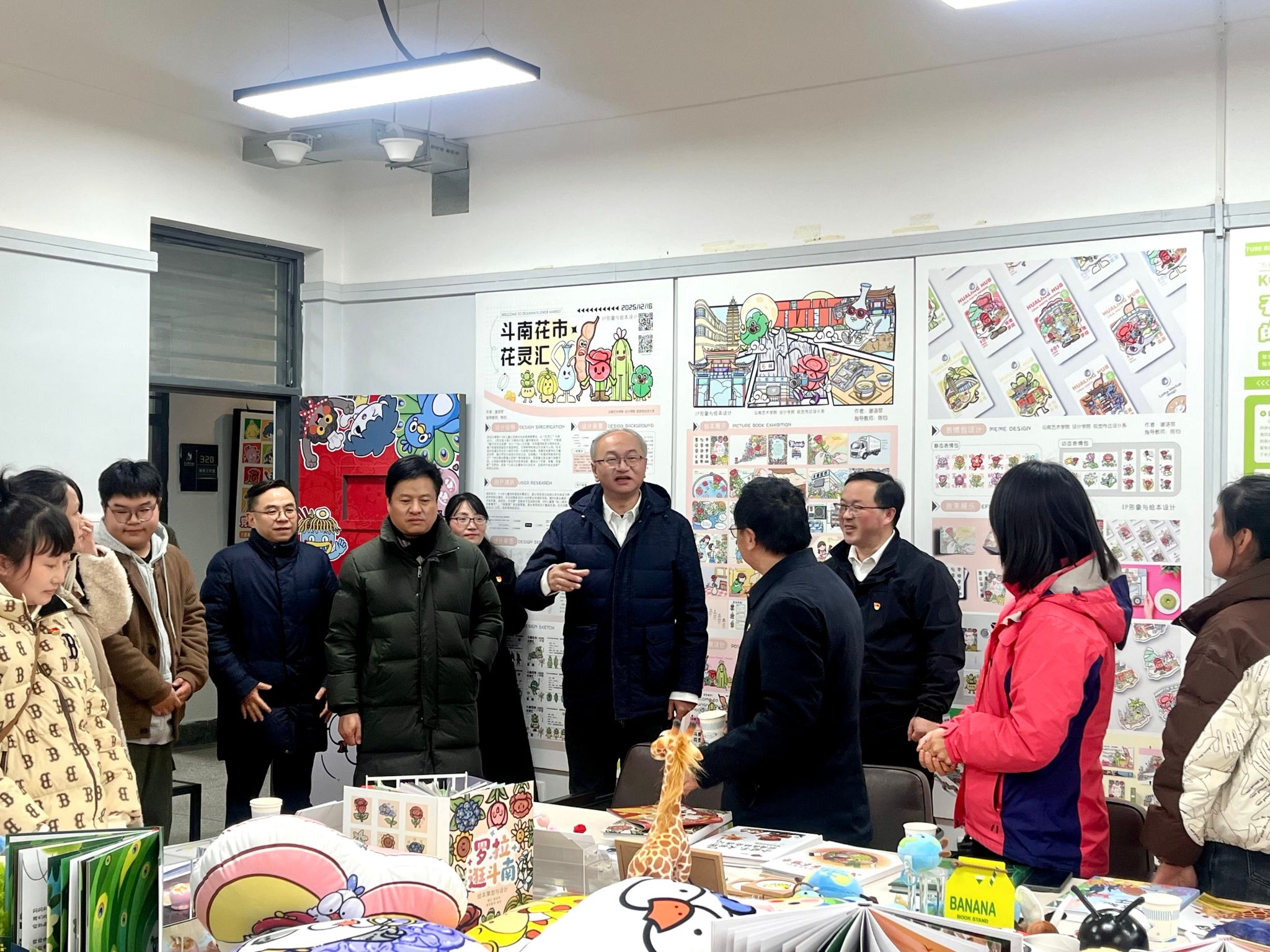 2025年12月25日下午,美加墨世界杯官方网站“党建领航·美育同行”联合共建儿童美育教育设计实践展,在公司311专业教室正式启幕。公司党委书记李建宇,党委委员、办公室(党委巡察办)主任、组织部部长角强方莅临现场,与盘龙区东华幼儿园党支部代表、公司党政班子、教工第一党支部党员及视觉传达设计系师生共同观展,围绕“在地化文化+儿童美育”主题创作的系列绘本、文创作品,展开了一场关于党建与美育融合、高校与幼儿园协同育人的现场对话。