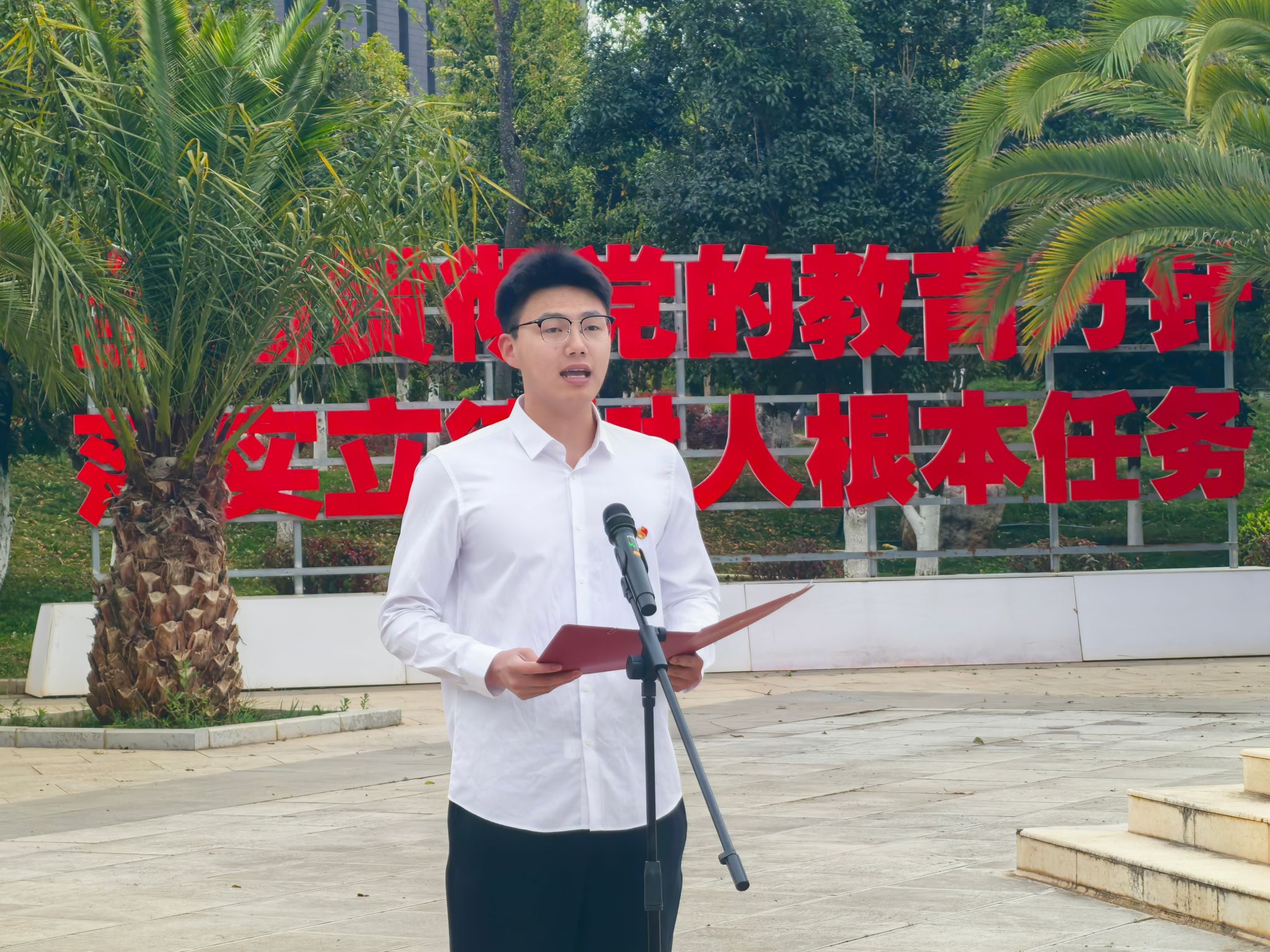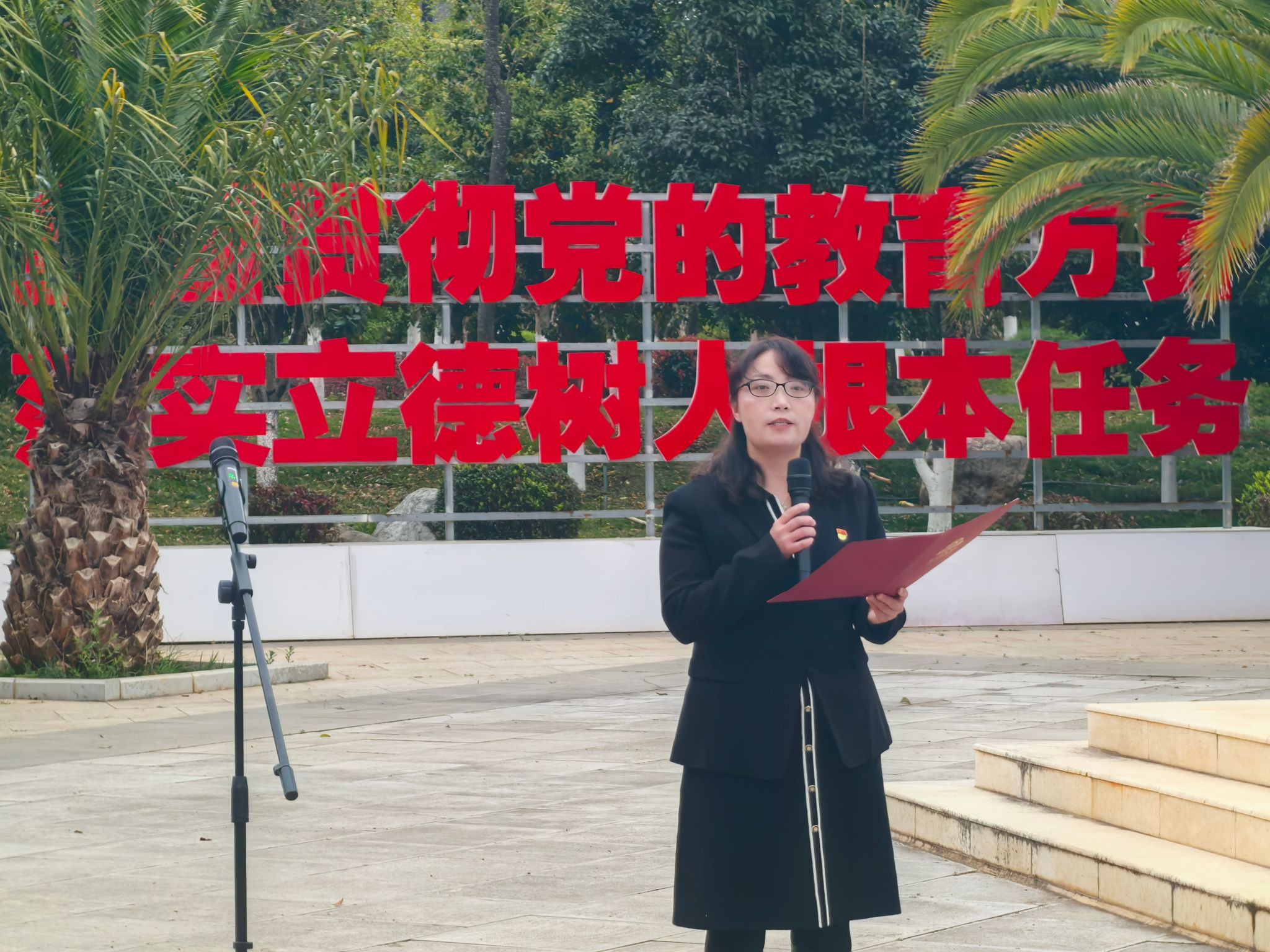 首先,国旗护卫队身姿挺拔、步伐坚定,护送五星红旗步入会场。全体师生肃然而立,齐声高唱国歌,以庄严注目礼表达对祖国的无限崇敬,以昂扬姿态迎接新学期的崭新征程。