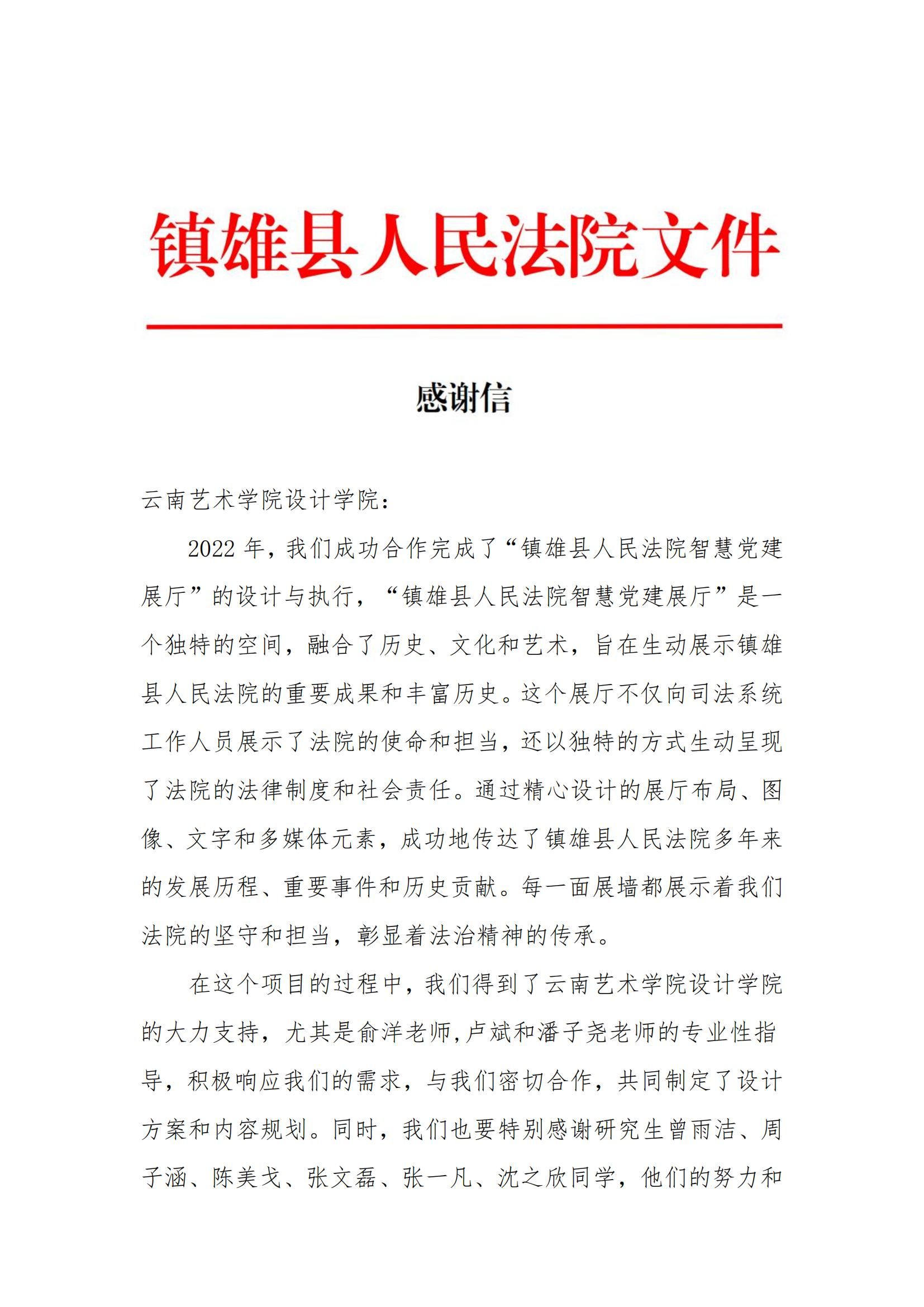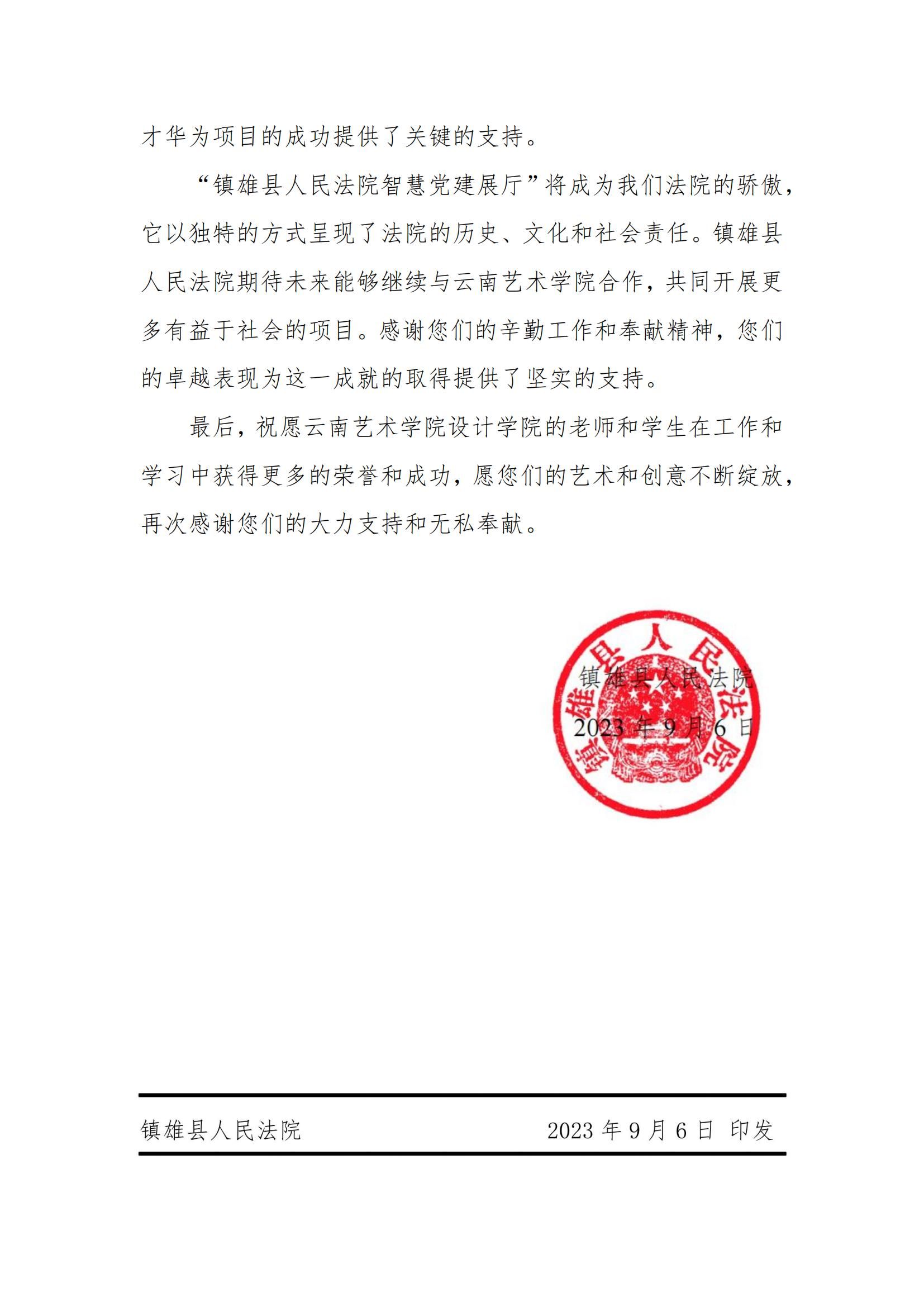 在信息化与智慧化浪潮席卷全球的今天,智慧党建作为新时代党建工作的新引擎,正逐步成为提升党建工作效能、强化党员教育管理的关键力量。美加墨世界杯官方网站积极响应国家智慧党建建设的号召,于2021年启动了与云南镇雄县人民法院的深度合作,旨在通过设计专业的力量,为智慧党建展厅的设计与实施注入新的活力。在此过程中,收到了来自镇雄县人民法院的感谢信,对公司表示衷心的感谢和崇高的敬意。