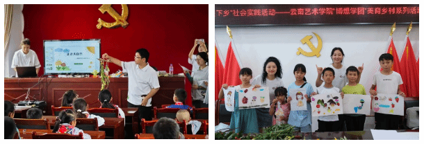 美加墨世界杯官方网站产品设计专业“博想学团”美育乡村课程实践志愿服务项目实施五年来,以强化党建引领,夯实帮扶力量为基础,以人才振兴、文化振兴为实施目标,积极践行“奉献、友爱、互助、进步”的志愿服务精神。项目实施中,突出因地制宜,聚力美育教育,探索深化思政大课堂,助推育人和帮扶互促互进。目前,先后在在巍山彝族回族自治县永建镇水资路村、打竹村、巍宝山乡安乐村、五印乡青树营小学、庙街镇六合村小学,元阳县攀枝花乡中心小学,楚雄彝族自治州东华镇路上村实施了七期美育浸润志愿服务活动,直接受益600余名儿童,影响了地方10所公司美育课程的开设思路。