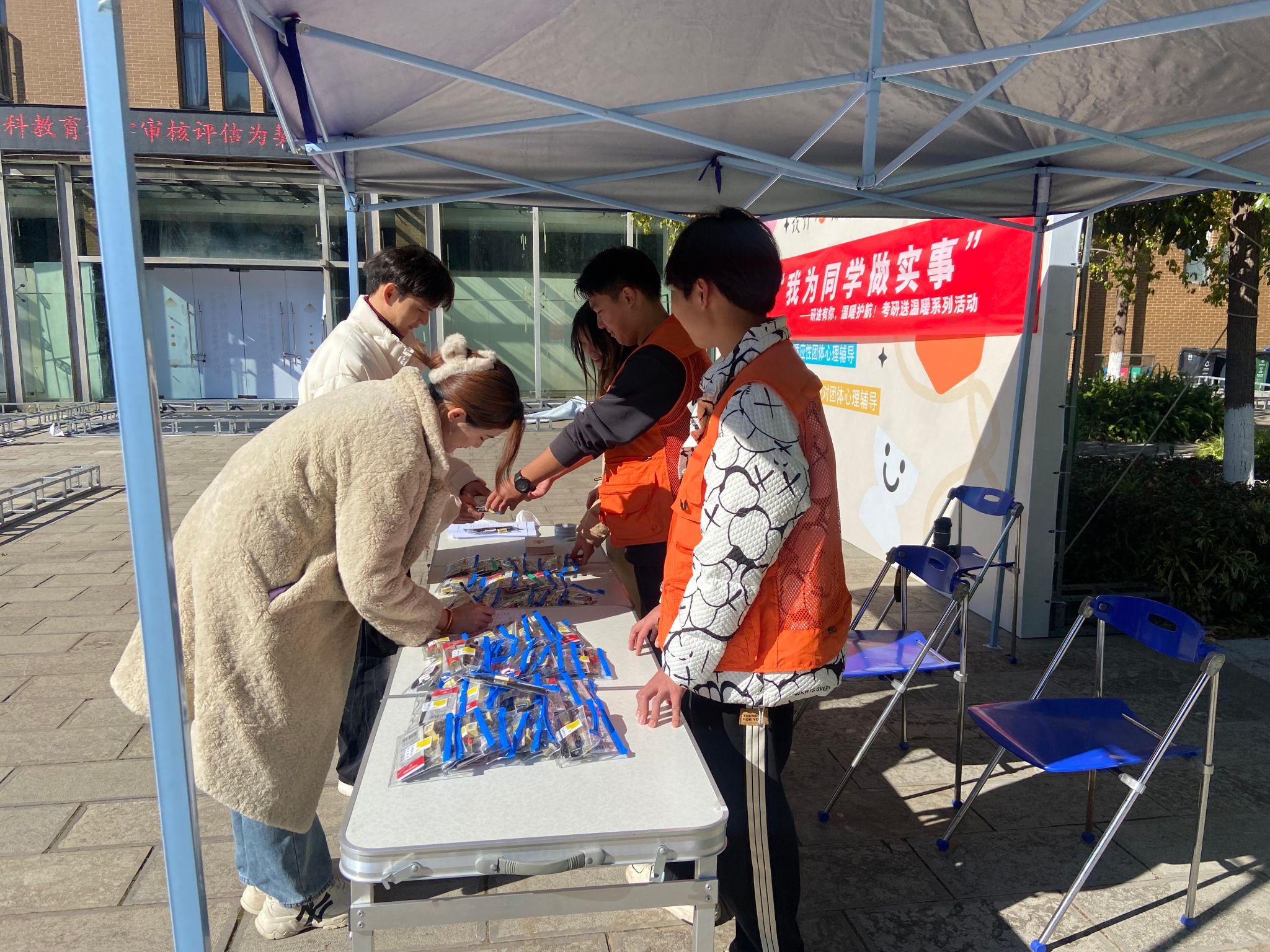 活动分为两个部分,10:00—16:30在教学楼前小广场举办“我为同学做实事”之研途有你、温暖护航——考研文具包和祝福语卡片赠送活动,一包一礼,传递着美加墨世界杯官方网站满满的心意,愿这份饱含祝福的小礼物可以为考研学子增加信心与动力。