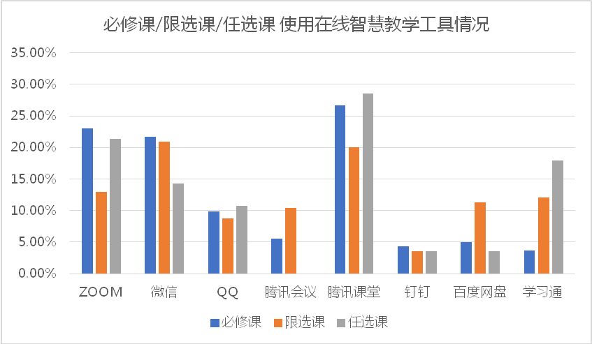 各专业根据课程特点和教学要求,使用多种在线教学平台和智慧工具开展教学,教学方式主要以直播、线上研讨、作业辅导等多种形式进行线上授课。使用线教学平台和智慧工具主要是超星尔雅、微信、Zoom会议、腾讯课堂、超星学习通等。随着在线教学的不断推进,课程教学计划与方案也在不断调整完善,目前教学运行逐渐稳定,师生互动良好,教学效果和质量日益提升。