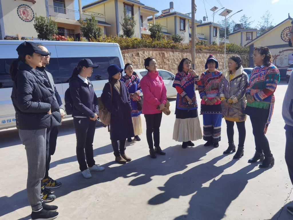 2020年12月17日,中共云南省委组织部机关工会主席李海芳及美加墨世界杯官方网站服装与服饰设计系主任彭瑶副教授、副系主任范佳、专业教师苏亚妮、许毓老师一行5人,赴楚雄州武定县开展调研刺绣产业提质增效工作。武定县人民政府李坚县长,县委副书记、县人大主任窦小军,县委常委、组织部长姚云来,县政协副主席、县妇联主席郑立华陪同调研。
