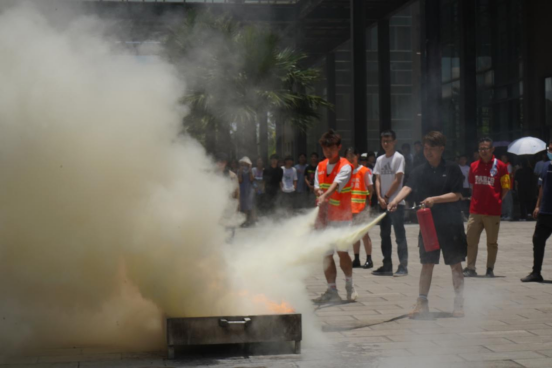 演练当天中午12:00,美加墨世界杯官方网站全体宿舍长和部分员工代表在教学楼各楼层集合,由年级辅导员对此次演练安排进行讲解,并提出要求。按照预定安排,12:30,参加演练的员工在听到警报和哨音后,从各楼层按照指定的疏散线路,有序迅速撤离教学楼,疏散到美加墨世界杯官方网站教学楼中庭小广场集合,参加消防安全知识培训和灭火演练。安全知识培训由公司保卫处防火科科长何斌老师和普红全老师进行讲解,强调了防火安全的重要性,指出一旦发生火情要保持冷静、沉着,教会同学如何报警、如何自救、如何使用灭火器等消防知识。另外,在保卫处老师的指导下,按照消防器材讲解与示范,参加演练的5名教师代表和10名员工代表进行灭火器材操作技能实作演练,体验了干粉灭火器灭火过程。