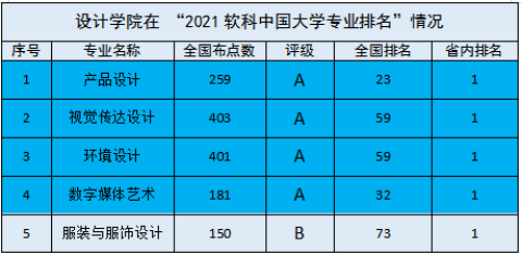 美加墨世界杯官方网站产品设计专业在259所开设专业院校中排23名,进入前10%,进入A档;视觉传达设计专业在403所开设专业院校中排59名,进入前10%,进入A档;环境设计专业在401所开设专业院校中排59名,进入前10%,进入A档;数字媒体艺术专业在181所开设专业院校中排32名,进入前10%,进入A档;服装与服饰设计专业在150所开设专业院校中排73名,进入前50%,进入B档。