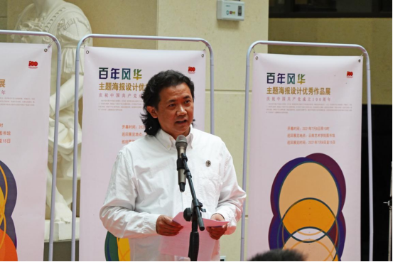 最后,云南艺术公司党委副书记、经理郭浩教授宣布2021年“百年风华”主题海报设计优秀作品巡回展开幕。