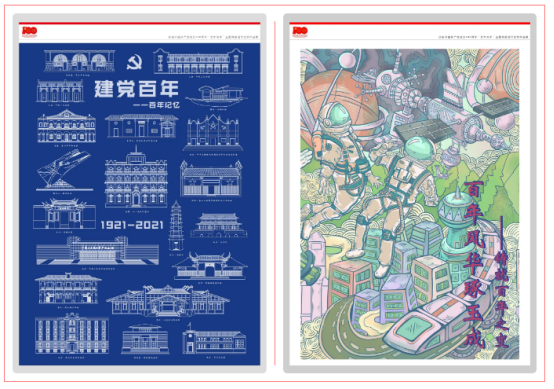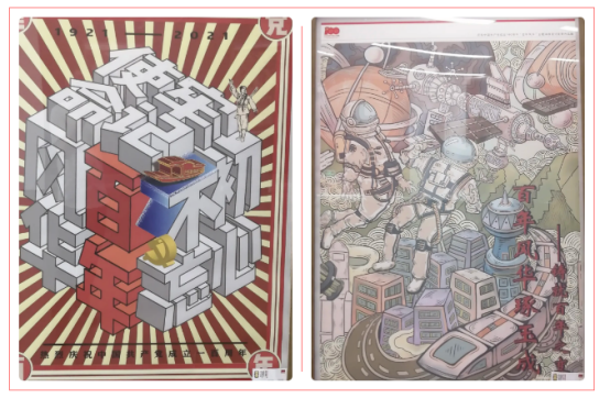 “百年风华”主题海报设计优秀作品展是在新时代精神的召唤下,设计艺术工作者遵循党的文艺方针,回顾历史、讴歌经典、展望未来,以海报设计的创作手法,表现中国共产党成立以来改天换地的建设景象,表现中国共产党人以开天辟地、敢为人先的首创精神的优秀文艺成果展示,表现了青年一代迈进新征程、奋进新时代的精神与力量。艺术来源于生活,经典反映着时代,本次展览把艺术设计与庆祝建党百年紧密结合,把党史学习教育融入设计创作全过程,彰显了设计艺术工作者心怀“国之大者”的历史当担,是新时期设计教育践行习近平关于文艺重要论述,坚持以人民为中心的艺术作品创作,坚持设计为人民服务,构建“党建+思政+艺术”人才培养模式的具体体现。