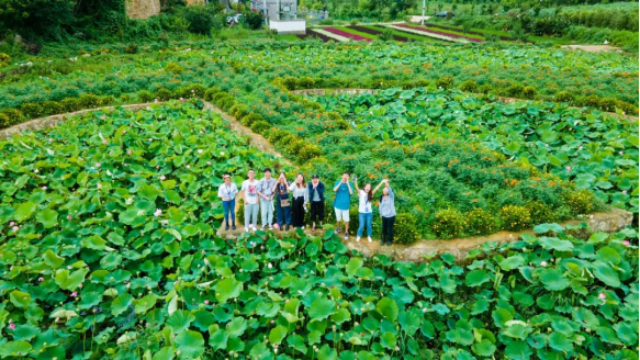 2021年7月30日上午,全体志愿者们了解麦地冲村运营模式,为乡村振兴出谋划策。同学们踏着清晨薄雾,沿着山乡绿道,在田园与森林中漫步,了解森林与农田。下午调研阿路龙田园综合体项目建设,一路走来,路边各色的花朵迎风摇摆,鸟瞰远方的七彩麦田组成具有民族特色的图案,彩稻绘梦乡的风光让人震撼。