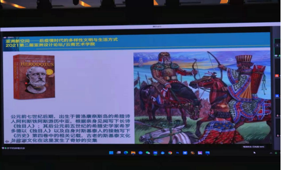中央美术公司许平教授在《后疫情时代的多样性文明与生活方式》主题发言中,从自身研究视角,为我们诠释了文化基因如何创造历史文明的背景渊源关系。通过分享日本文献名著与草原骑士斯基泰人的文化贡献这两个案例,为我们重点阐述了草原的民族文化基因对历史文化的影响和贡献。