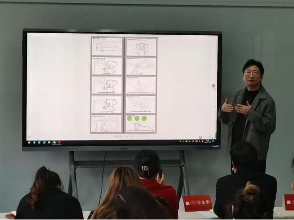 刘恩鹏老师讲述了参与制作人民网COP15宣传动画“萌萌象”的创作经历。此次动画创作缘于今年云南西双版纳出走北上的大象群,作为全球视野关注的焦点,如何生动地将这一批北上的大象的经历制作成为我们国家生态文明建设的最佳形象宣传片,是创作团队主要考虑的,通过前期紧张的协调,团队迅速整合进入创作,依照科普片的形式,以MG动画创作手法,以每个星期播放三集的时间进度开展创作。动画经人民网播出,即引发了千万点击量和好评。此次创作充分展现了数字媒体艺术专业服务国家发展、服务社会的宗旨,激发了专业员工爱国爱校爱设计的浓厚情怀和专业学习的成就感。