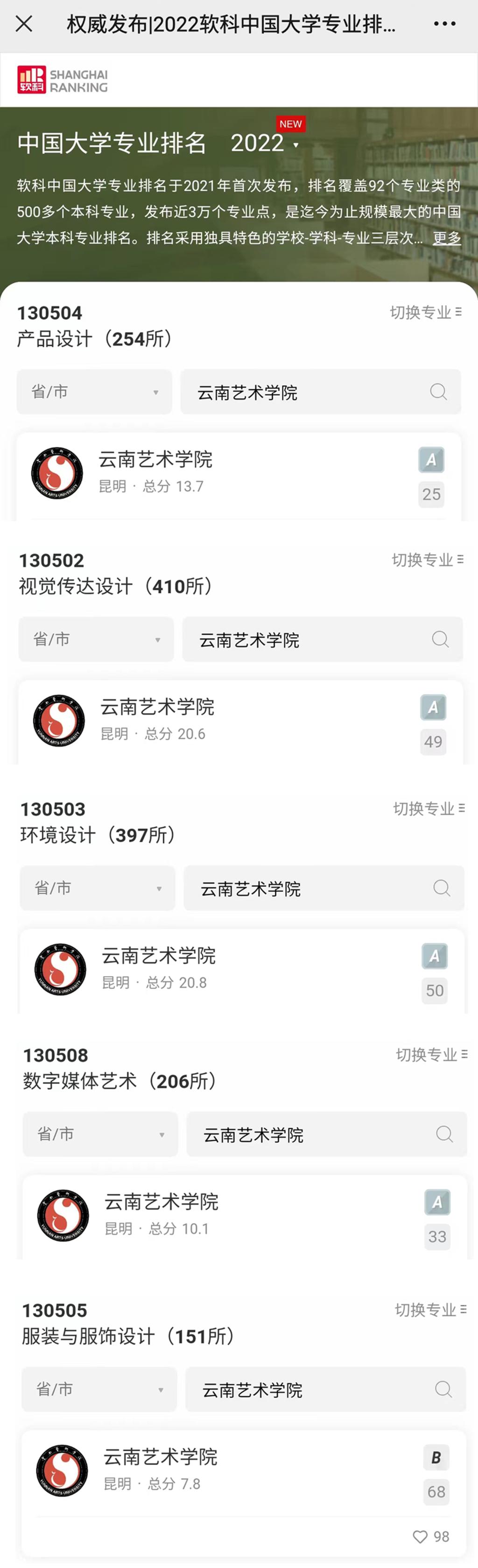 2022年6月18日,高等教育评价专业机构“软科”正式发布2022“软科中国大学专业排名”。排名包括568个本科专业,每个专业榜单发布的是所有开设该专业的高校中排名位列前50%的高校,共有990所高校的30242个专业上榜。“软科中国大学专业排名”是迄今为止覆盖专业数量最多、参评专业规模最大的中国大学本科专业排名。