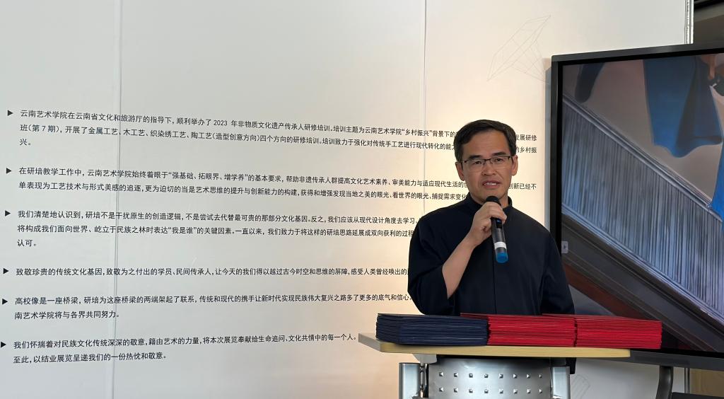 美加墨世界杯官网副经理陈劲松教授从国家开展非遗研培的初衷与期望、公司研培的办学特色与创新、研培成果的创新转换等方面向与会人员阐述了清晰的发展蓝图与构想,并殷切希望研培学员能够借助此次研培的多方面收获,在工艺创新与作品呈现等方面有更多、更好、更强的作品呈现。