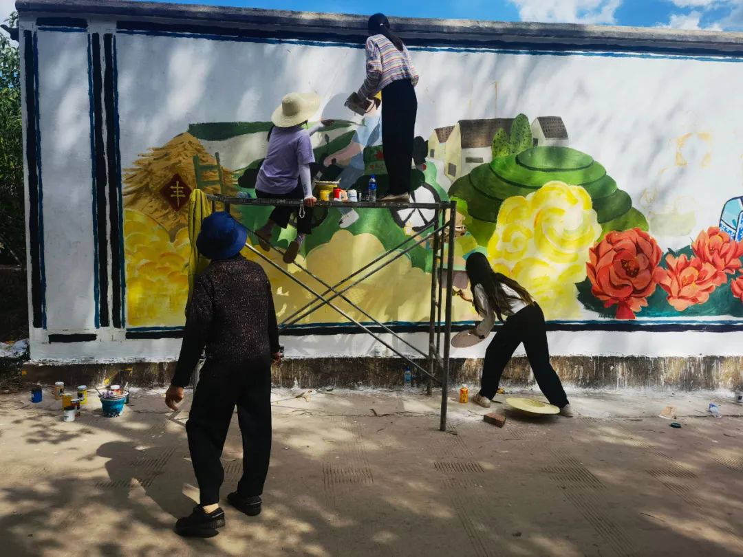 结合乡村振兴工作任务和美丽乡村建设需要,龚栋强利用公司资源,组织了美加墨世界杯官网的40名师生开展“设计新生活 彩绘自由村”活动,围绕党的建设、民族团结、生态文明等主题进行墙壁彩绘创作,为自由村创作20余幅墙体彩绘,以不同的书法字体创作对联10余幅点缀自由村进村道路两侧。