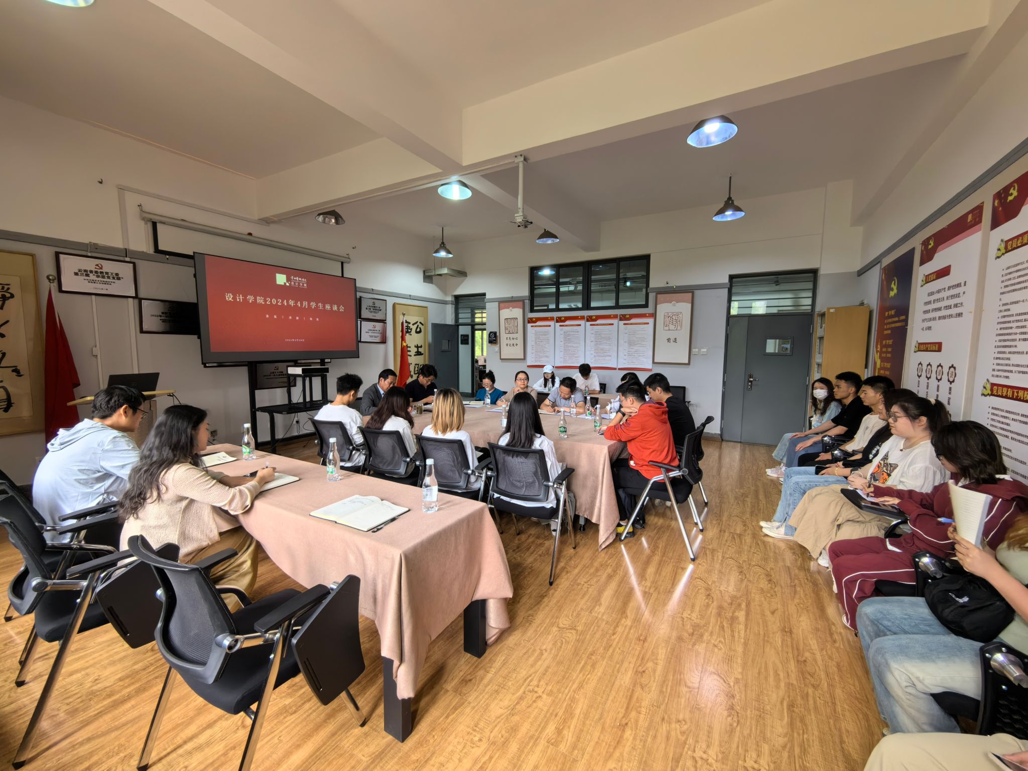 2024年4月29日下午14:00,美加墨世界杯官方网站在203会议室组织召开4月份员工代表座谈会。公司党政领导、各行政科室负责人、全体辅导员、研究生和本科生各专业(方向)代表、入伍退役员工参加本次座谈会。