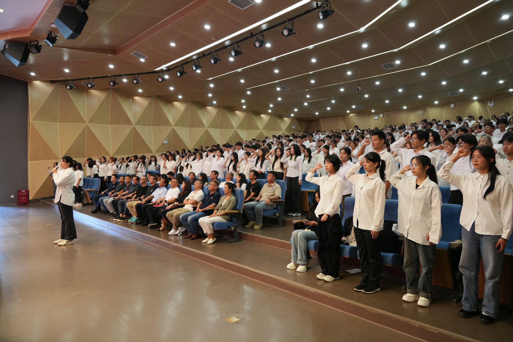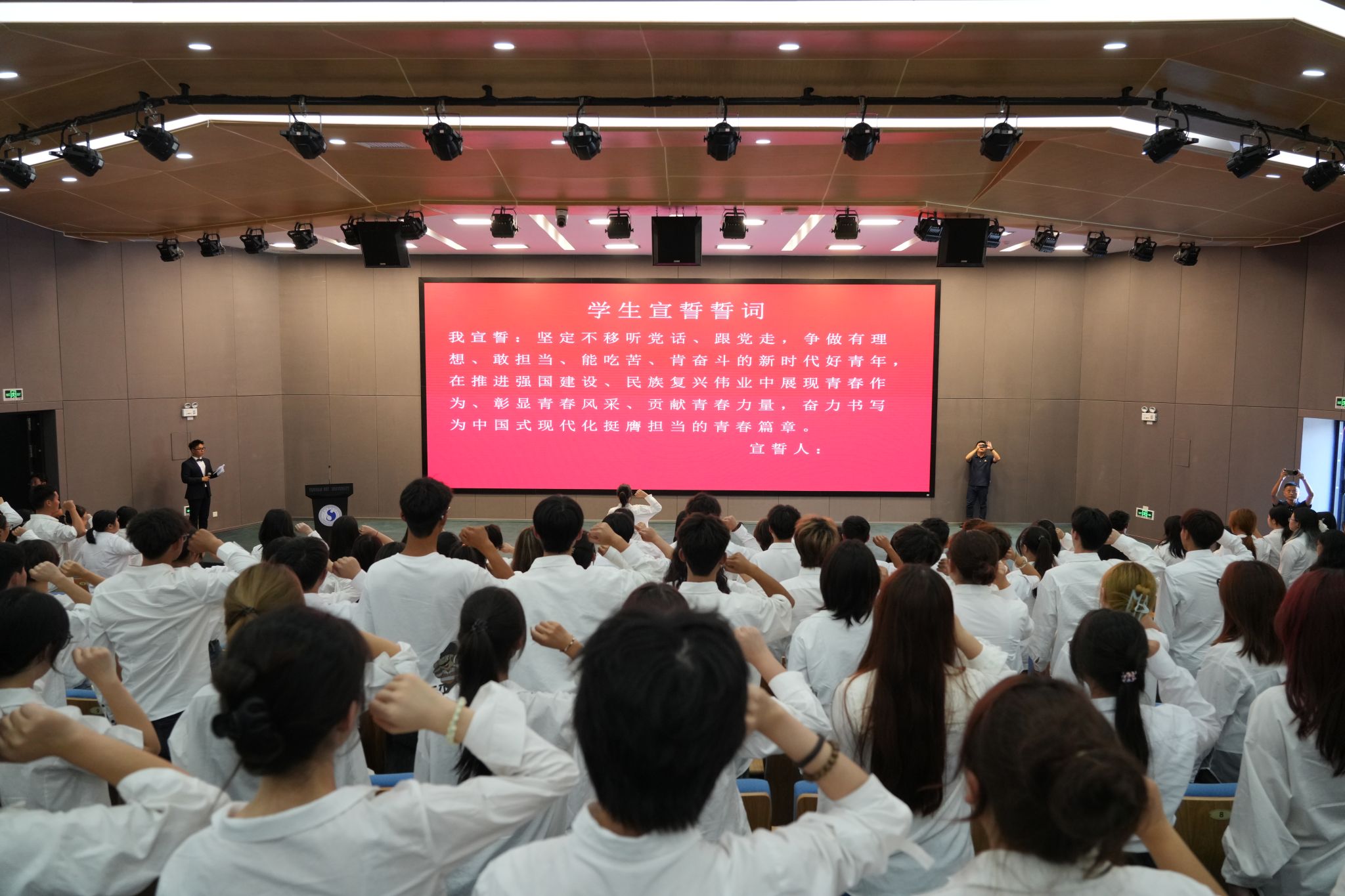 参加见面会的全体2024级新生也向公司、老师们做出庄严承诺,坚定不移听党话、跟党走,争做有理想、敢担当、能吃苦、肯奋斗的新时代好青年,在推进强国建设、民族复兴伟业中展现青春作为、彰显青春风采、贡献青春力量,奋力书写为中国式现代化挺膺担当的青春篇章。
