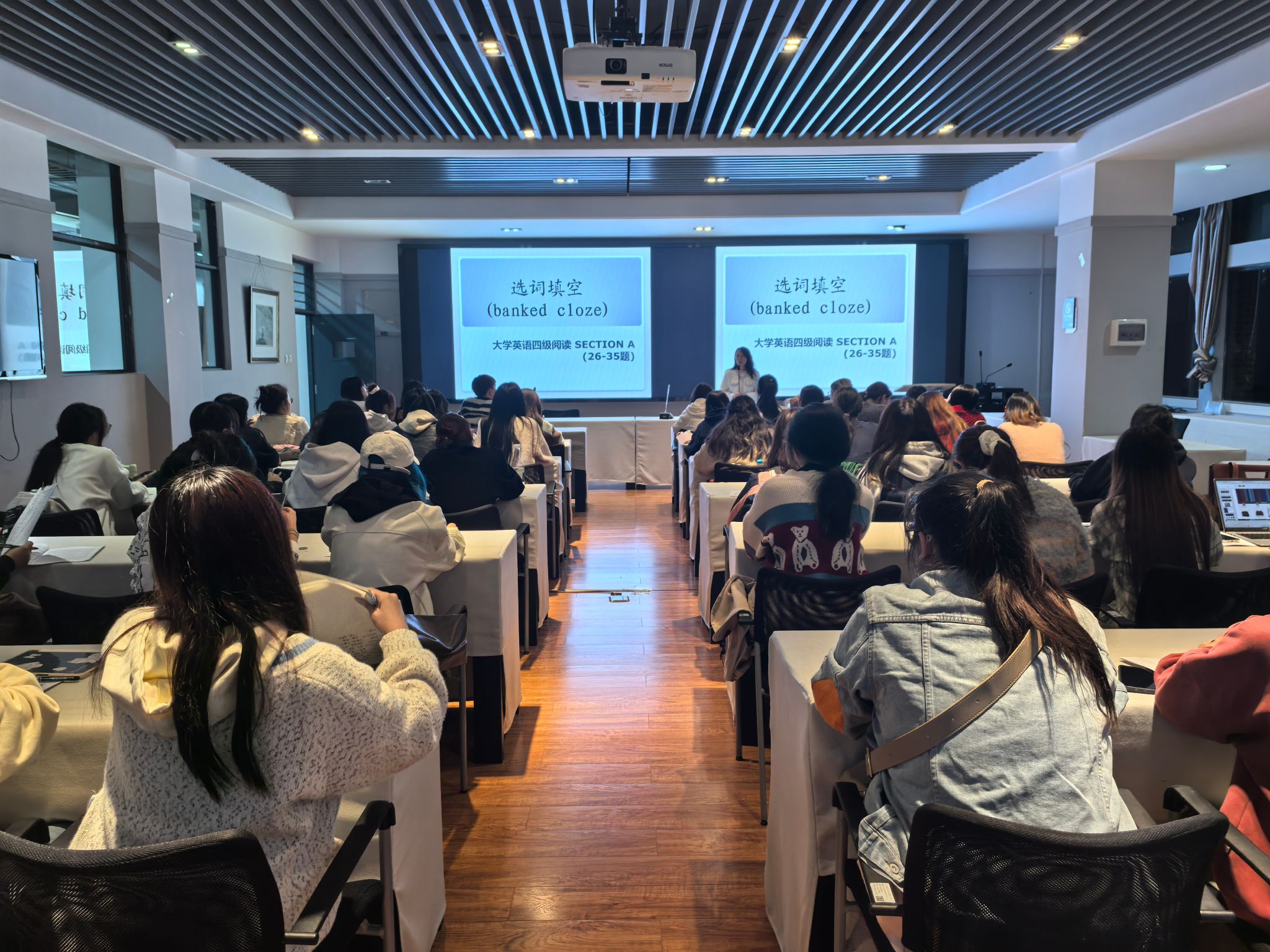 美加墨世界杯官方网站本科生综合素质能力提升系列讲座之“助力考级、提素赋能”大学英语四级考试辅导于2024年10月9日开讲,邀请到云南师范大学外国语公司教师雷姣分别从大学英语四级考试整体介绍、考试流程、分值分布、阅读理解section-A做题方法讲解和练习等四个部分,主要聚焦题型分析和解题技巧,结合历年真题,为同学们阐述了解题策略和方法,雷姣老师还为同学们进行后续的备考规划,从时间管理到复习进度要求进行了详细的安排。按照辅导计划,后续还将从阅读理解section-B、阅读section-C、翻译和写作部分的解题技巧进行专题讲解和辅导。